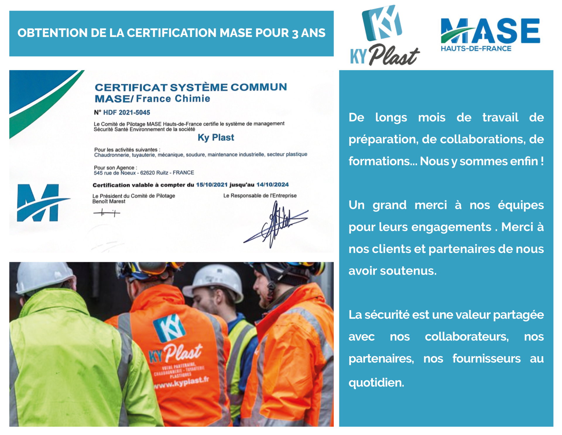 L'OBTENTION DE LA CERTIFICATION MASE POUR 3 ANS